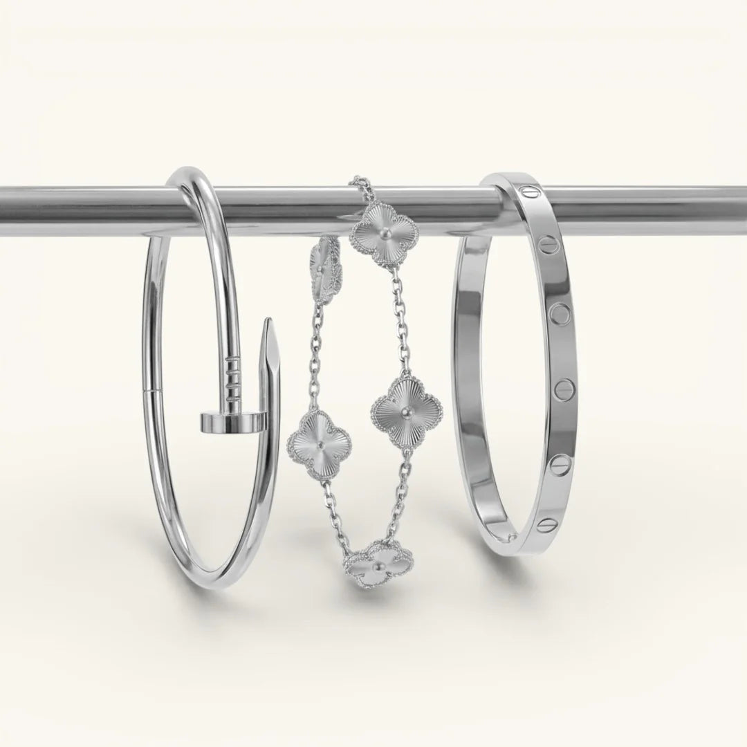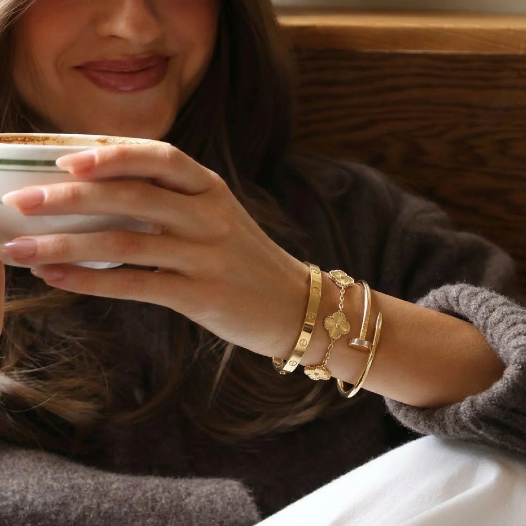 Shimmer in with the Elegance Deluxe Stack—a luxurious quartet of bracelets designed for timeless elegance and modern versatility. Perfect for stacking or wearing solo, this collection combines understated charm with bold sophistication, elevating any outfit effortlessly.