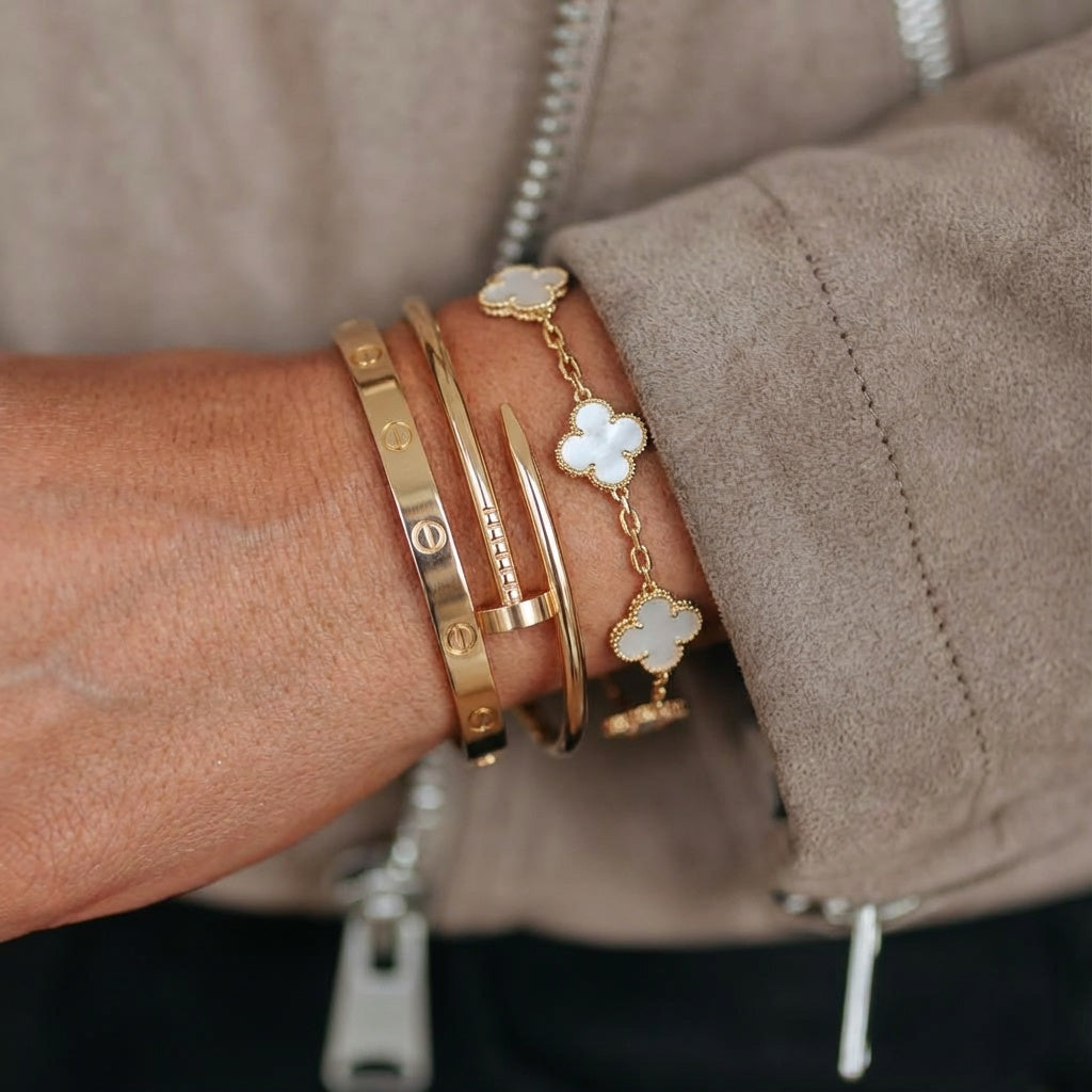 • Elegance Nail Bracelet: A bold and modern statement piece with a sleek nail-inspired design (one size).