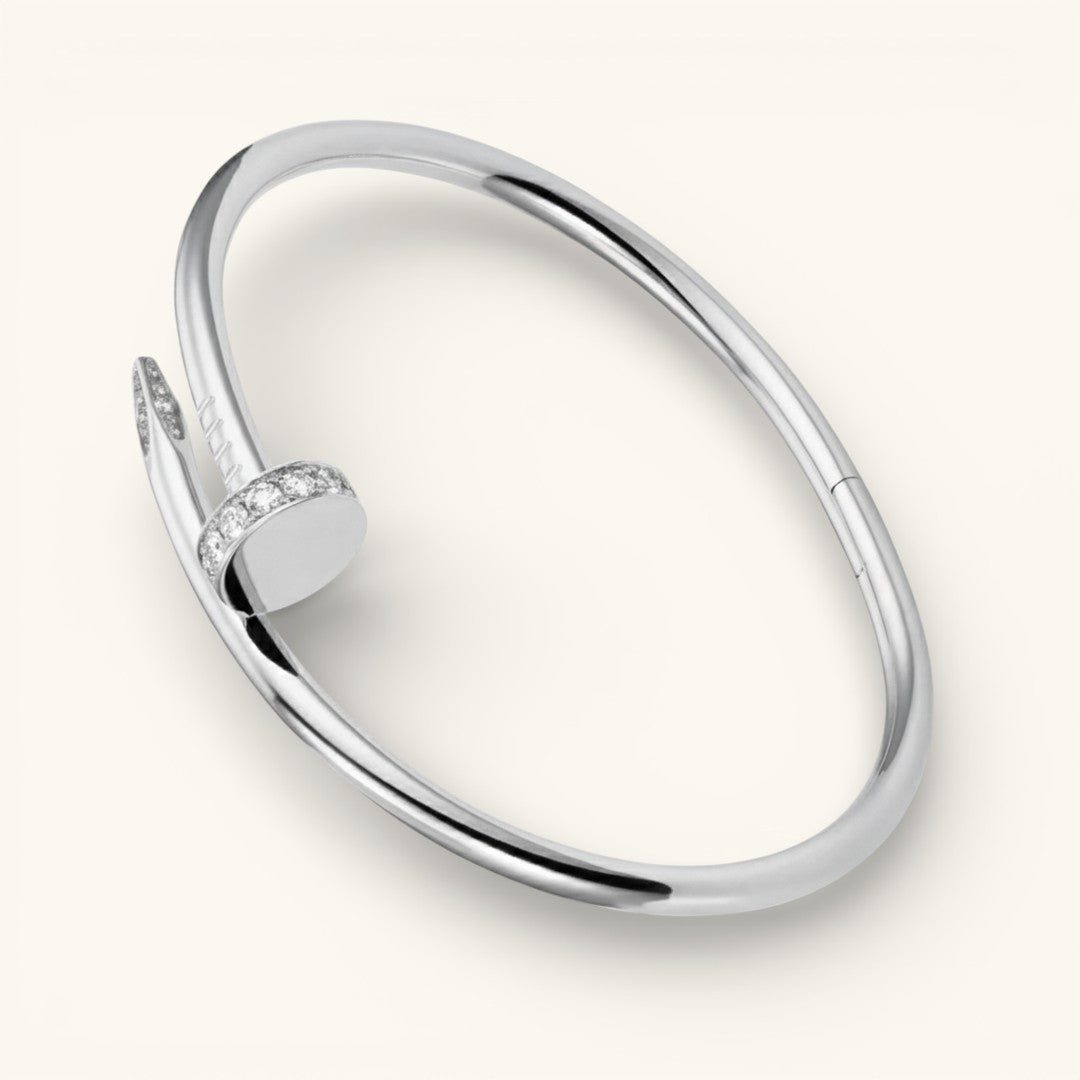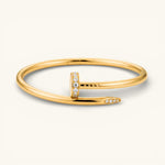 The Elegance Nail Bracelet in gold is a striking piece that balances minimalist design with a touch of glamour. Whether worn alone or layered with other bracelets, it's the perfect accessory to elevate your style for any occasion.