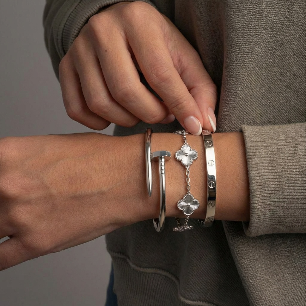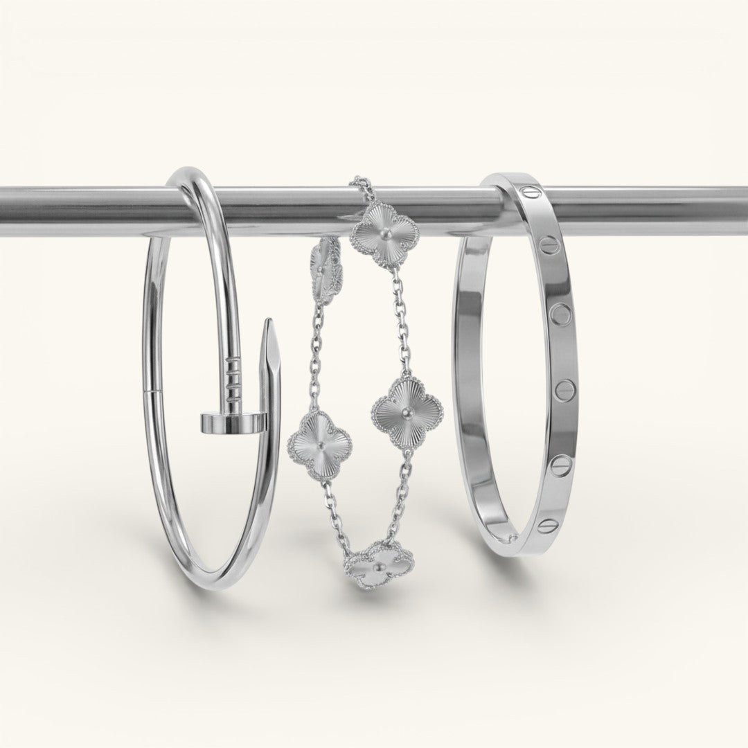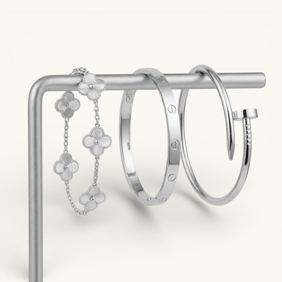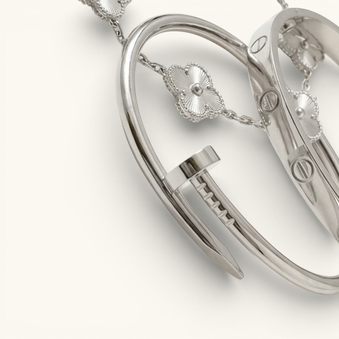 • Elegance Nail Bracelet: A bold and modern statement piece with a sleek nail-inspired design (one size).